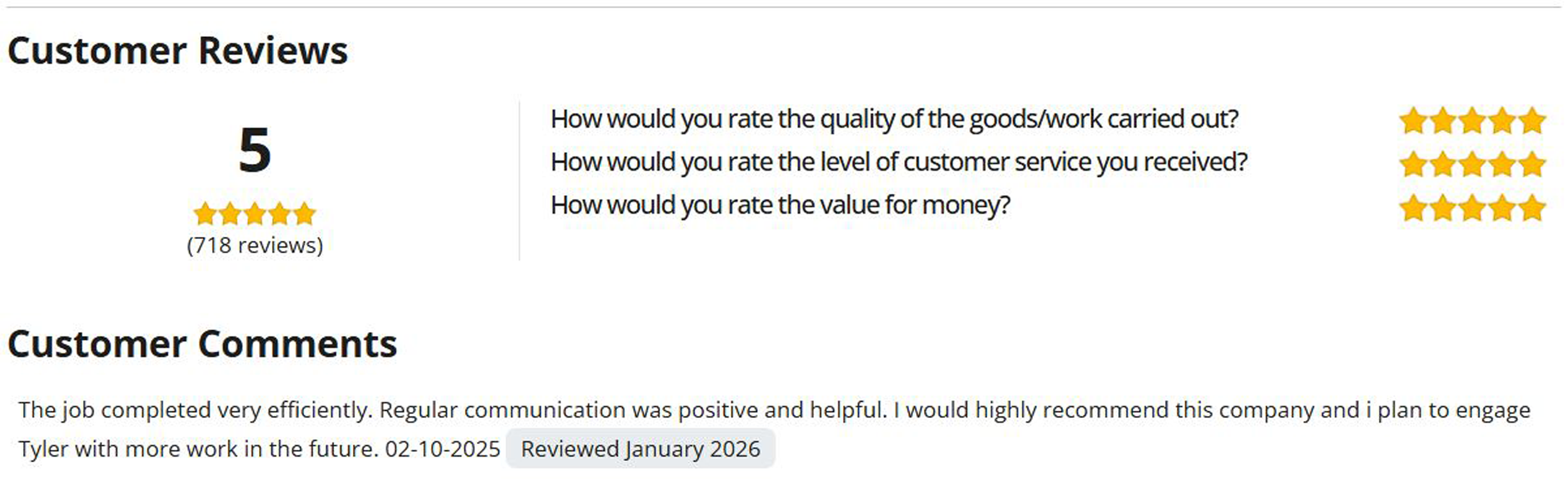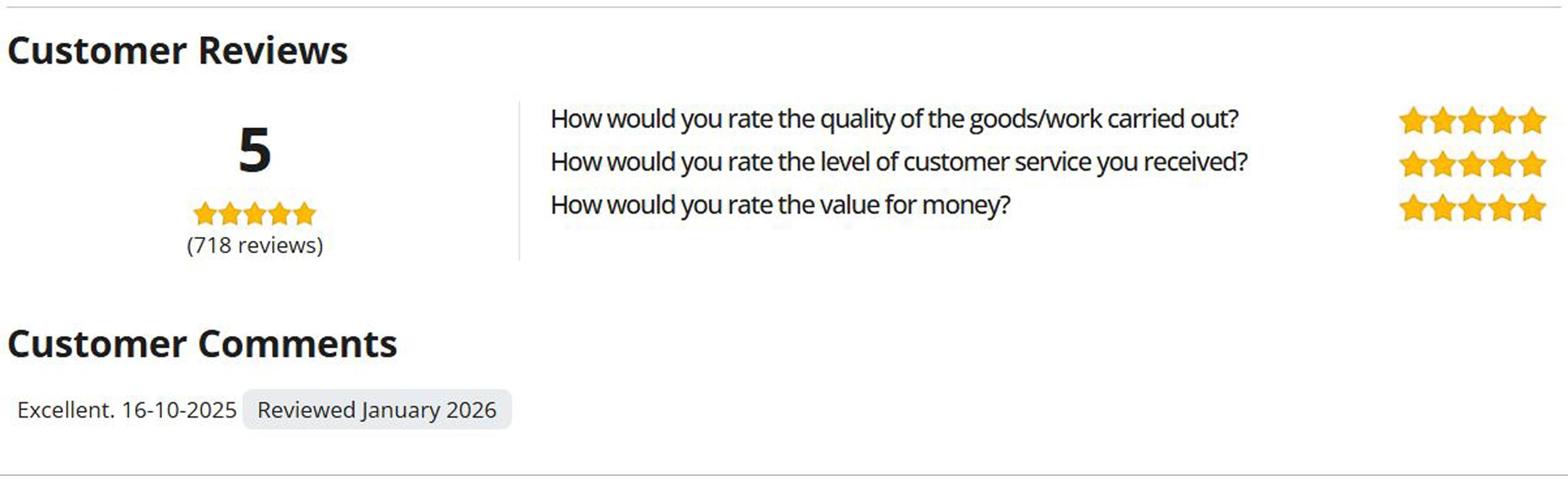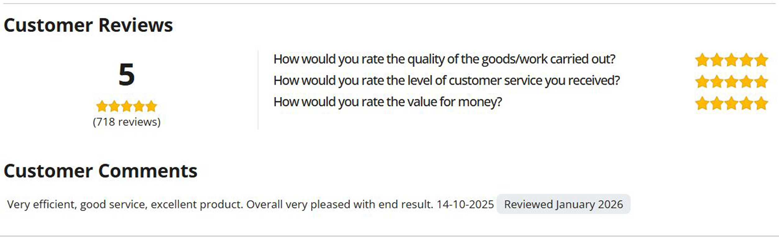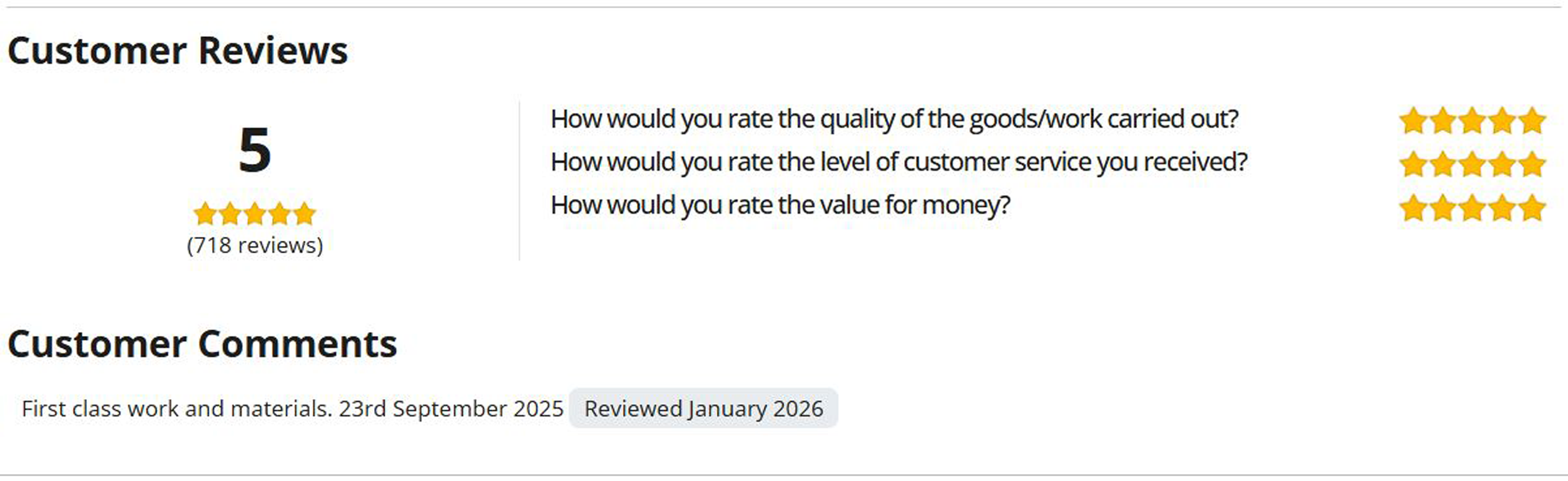 Prices are competitive and all work is carried out to the highest standard and always to the customers satisfaction.